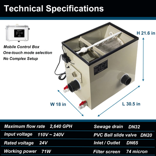 NinjaSieve RDF Automatic Rotary Drum Filter for Koi Tilapia Pond, Fish Farm,Aquarium,Hydroponics, Aquaculture, Aquaponics, with Mobile Control Box, Smallest Koi Pond Filter 4T10-2 (925GPH)