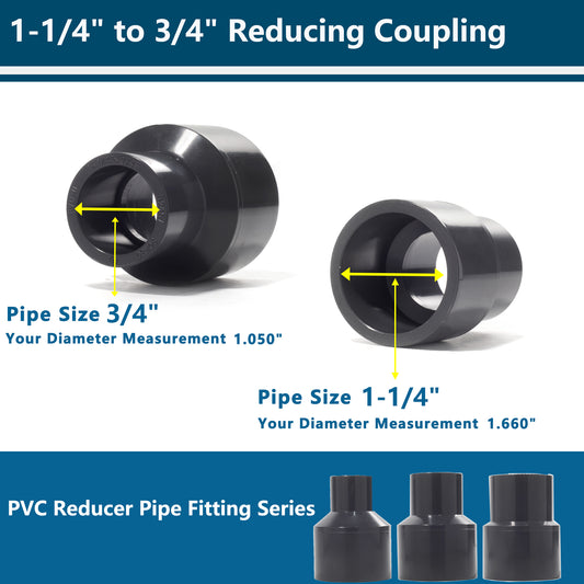 Gray PVC Reducing Coupling Bushing, High-Flow PVC Reducer Pipe Fitting (Socket x Socket, SCH80)